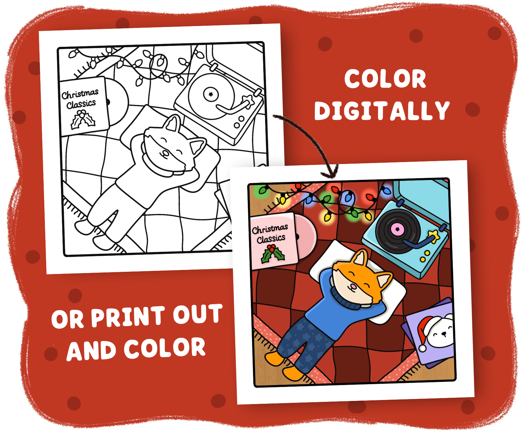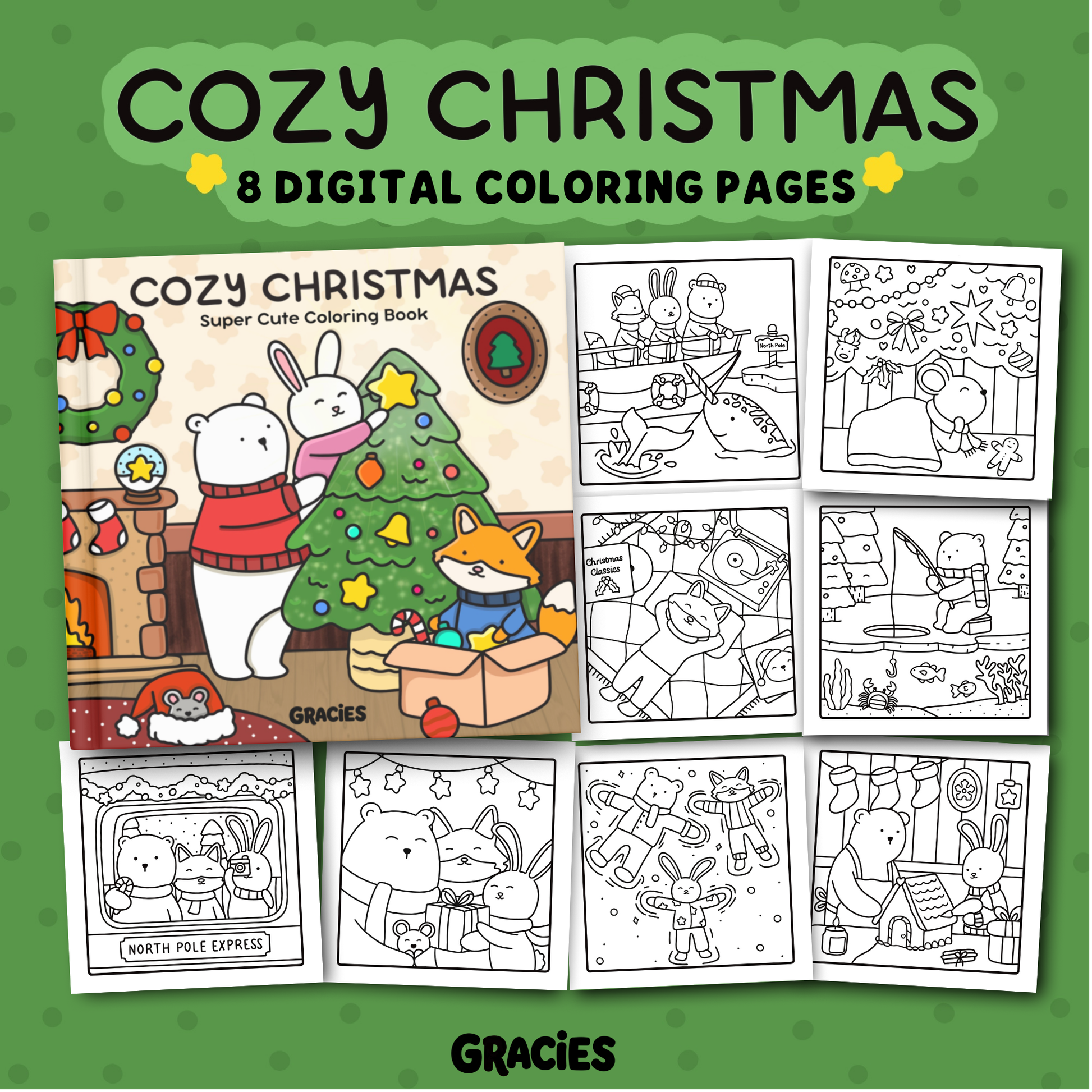 Cozy Christmas 8 Page Digital Coloring Book