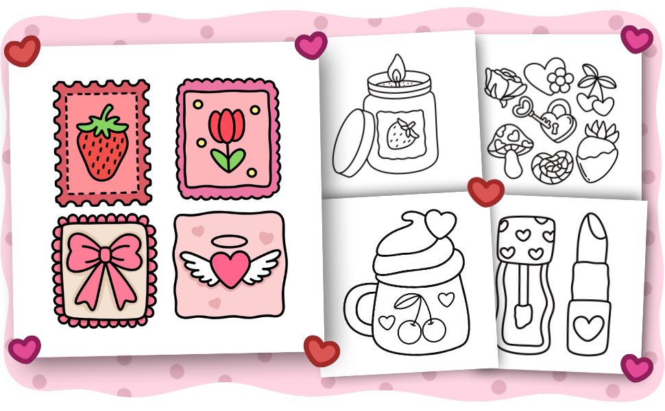 Seems like a decent book for a beginner who just likes hearts. The images are all very bold and easy, single objects without any backgrounds. A couple were pretty cute and I actually wanted to color them, but over half were ones I'd probably give to my 5yo and skip because they weren't really to my taste