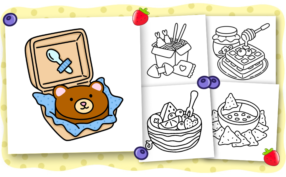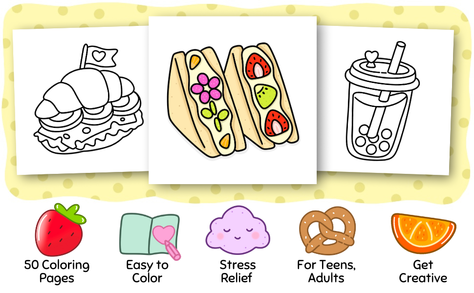 As part of the coloring community, I prefer simple pages with bolder lines, and this book delivered. It has the perfect variety of snacks and treats to keep you busy. I can easily spend hours on this book using different techniques to bring my picture to life. I love this book.