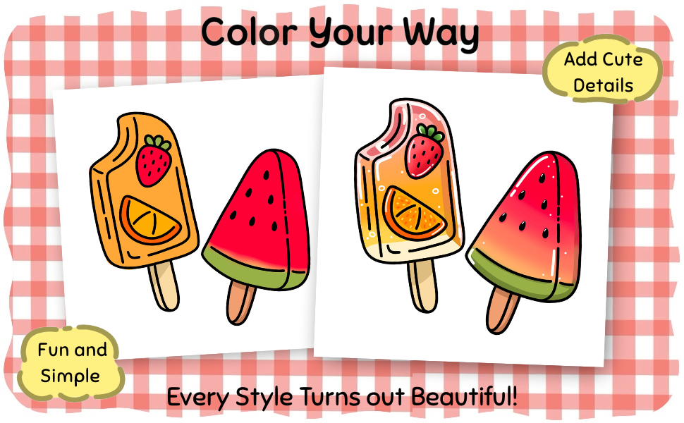 Gracies seems to focus on very simple coloring books, so if you like their style you will like this one. Out of all the snacks books, this one probably ranks as my second or third favorite since it includes some that I actually would want to eat and the shapes are pleasing to me. I just kind of expected it to be more bold because my markers still do bleed outside the lines if I'm not careful